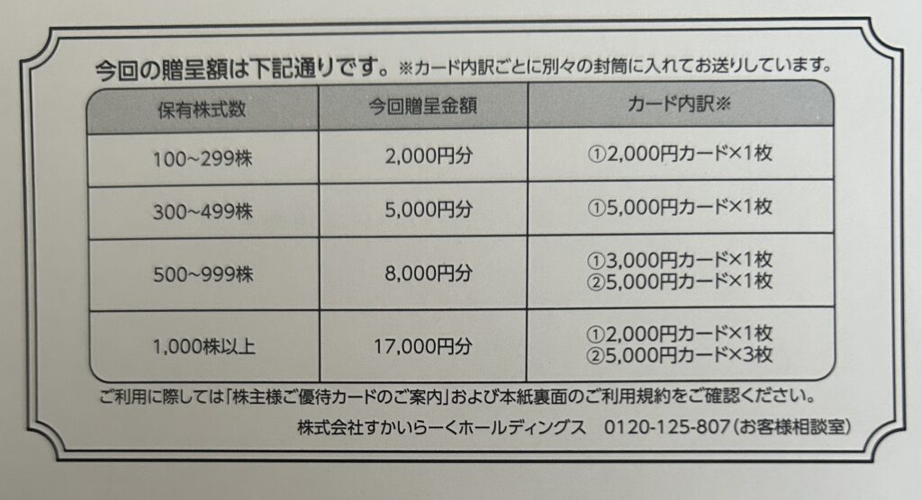 すかいらーくより優待カードが届きました。1000株保有で17000円でした。ガストのお持ち帰りで使っています。最近はうなぎ弁当を注文することが多いです。